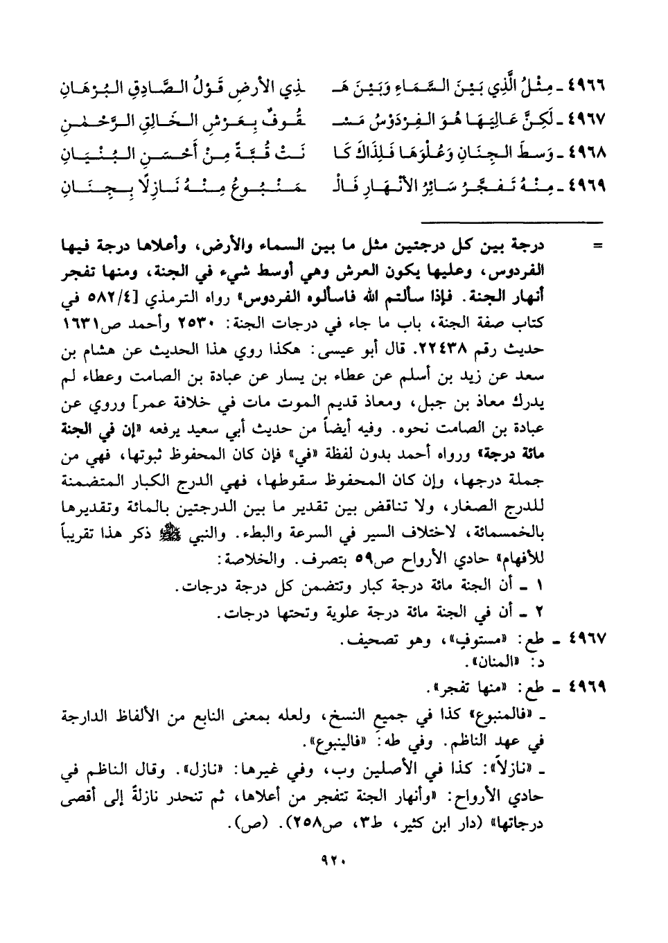 ٤٩٦٧ - لَكِنَّ عَالِيَهَا هُوَ الفِرْدَوْسُ مَسْـ ... ـقوفٌ بِعَرشِ الخَالِقِ الرَّحْمنِ
