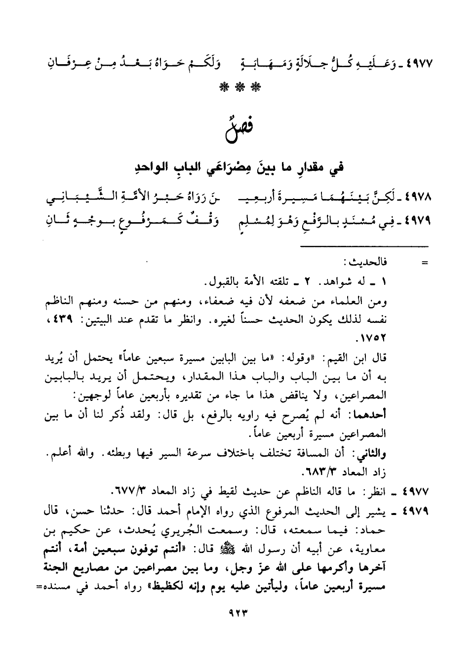 ٤٩٧٨ - لَكِنَّ بَيْنَهُمَا مَسِيرةَ أربعِيـ ... ـنَ رَوَاهُ حَبْرُ الأمَّةِ الشَّيبَانِي