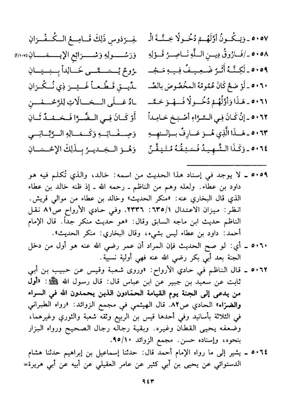 ٥٠٥٩ - لَكِنَّهُ أَثَرٌ ضَعِيفٌ فِيهِ مَجـ ... ـروحٌ يُسَمَّى خَالِدًا بِبَيَانِ