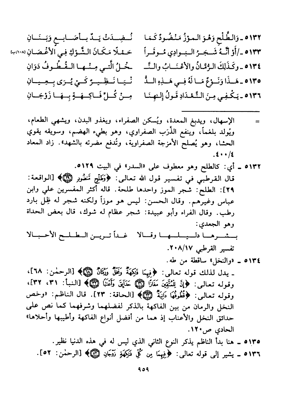٥١٣٢ - أي: كالطلح وهو معطوف على "السدر" في البيت ٥١٢٩.