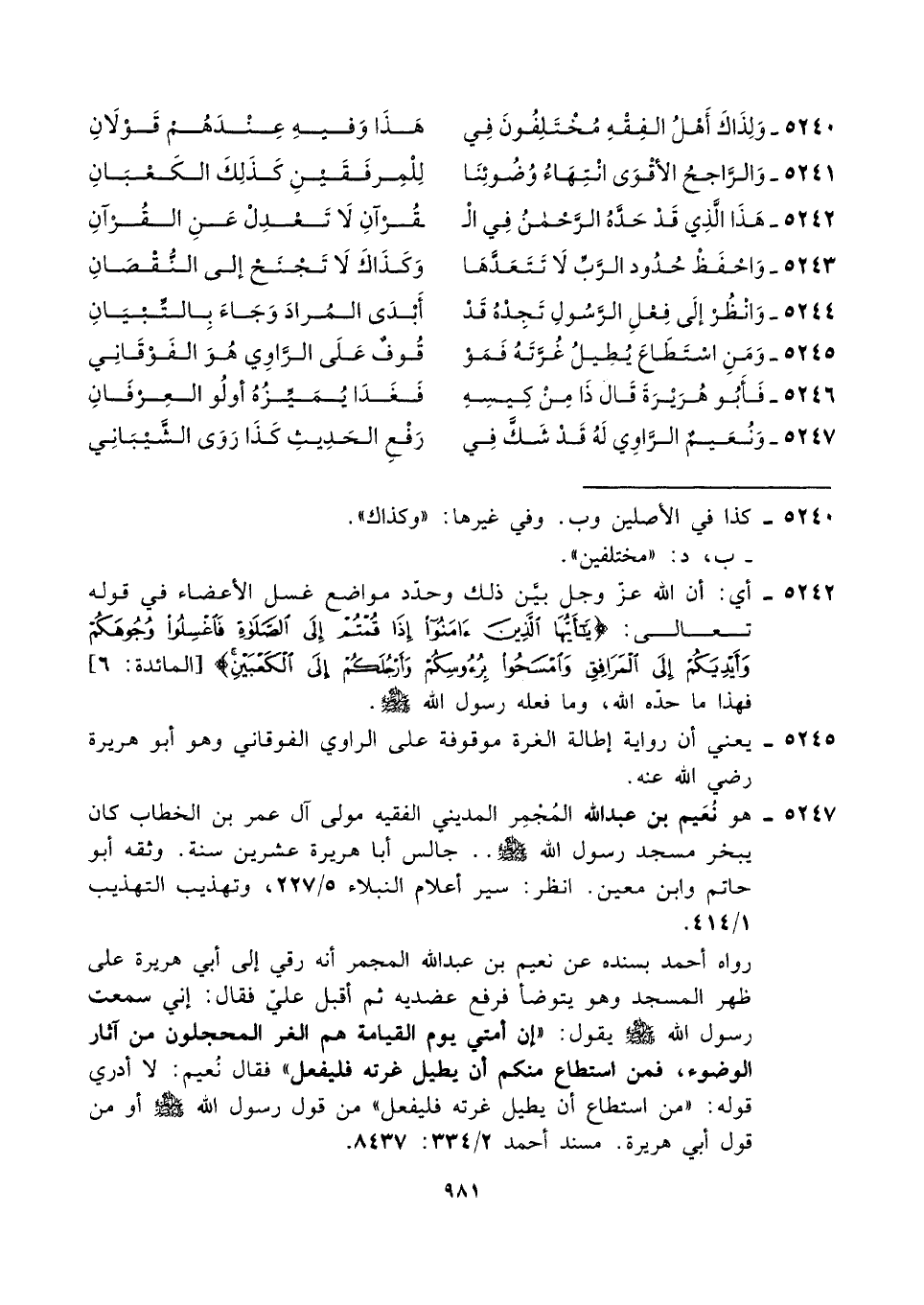 ٥٢٤٥ - يعني أن رواية إطالة الغرة موقوفة على الراوي الفوقاني وهو أبو هريرة رضي الله عنه.