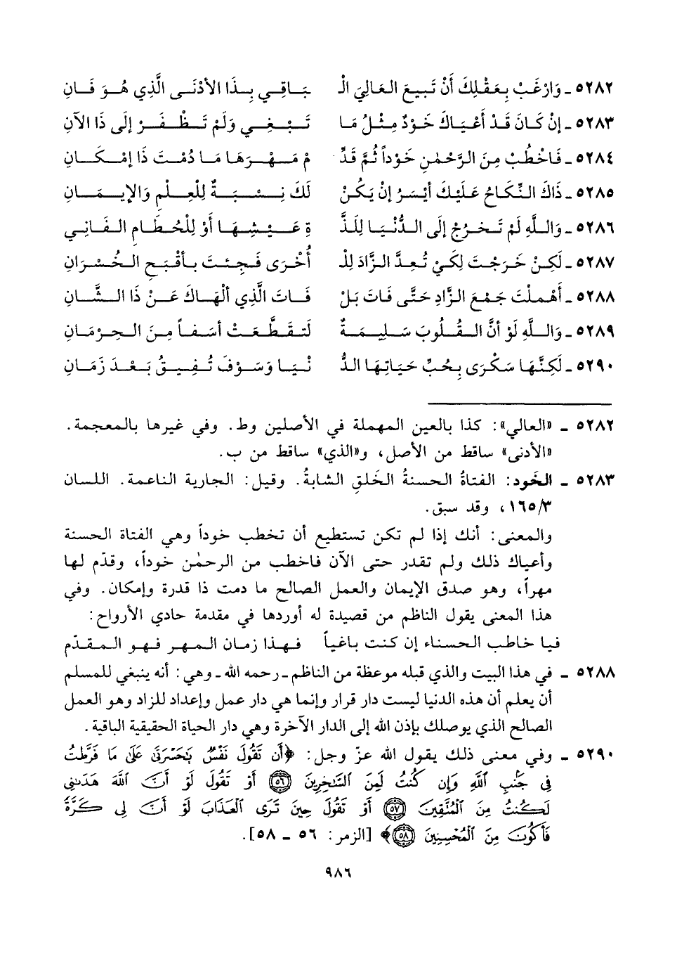 ٥٢٨٤ - فَاخْطُبْ مِنَ الرَّحْمنِ خَوْدًا ثُمَّ قَدِّ ... مْ مَهْرَهَا مَا دُمْتَ ذَا إمْكَانِ