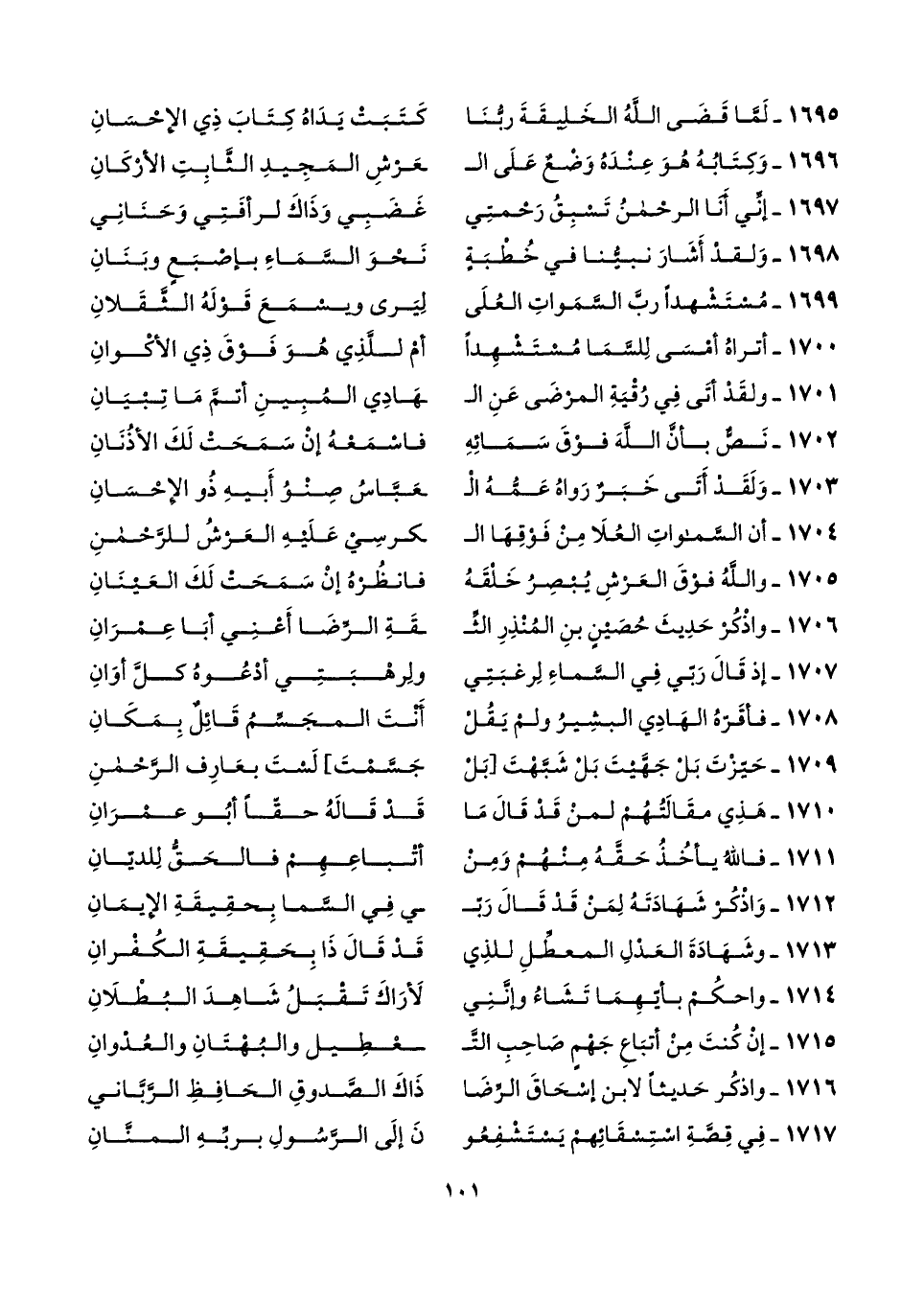 ١٦٩٧ - إنِّي أَنَا الرحْمنُ تَسْبِقُ رَحْمتِي ... غَضَبِي وَذَاكَ لرأفَتِي وَحَنَانِي