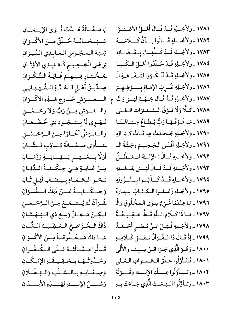 ١٧٩٧ - مَاذَا كَلَامَ اللهِ قَطُّ حَقِيقَةً ... لكِنْ مَجَازٌ وَيحَ ذي البُهْتَانِ
