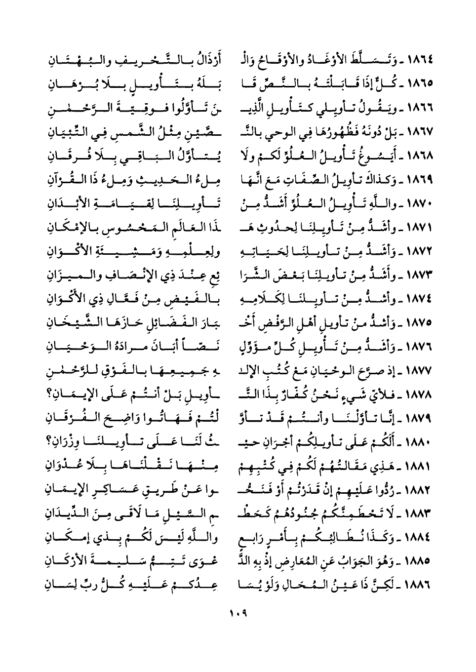 ١٨٦٩ - وَكذاكَ تأوِيلُ الصِّفَاتِ مَعَ انَّهَا ... مِلءُ الحَدِيثِ وَمِلءُ ذَا القُرْآنِ