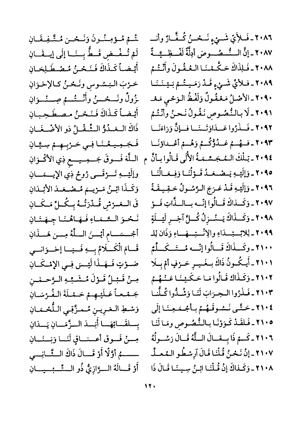 ٢٠٨٧ - إنَّ النُّصُوصَ أدِلَّةٌ لَفْظِيَّةٌ ... لَم تُفْضِ قَطُّ بِنَا إلَى إيقَانِ