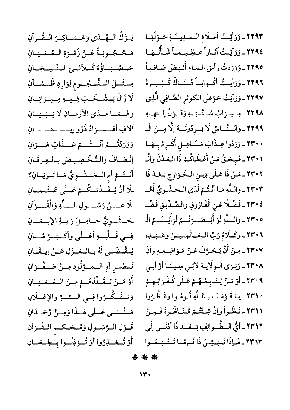 ٢٣٠٦ - وكَلَامُ رَبِّ العَالَمِينَ وعَبْدِه ... فِي قَلْبهِ أعْلَى وأكْبَرُ شَانِ
