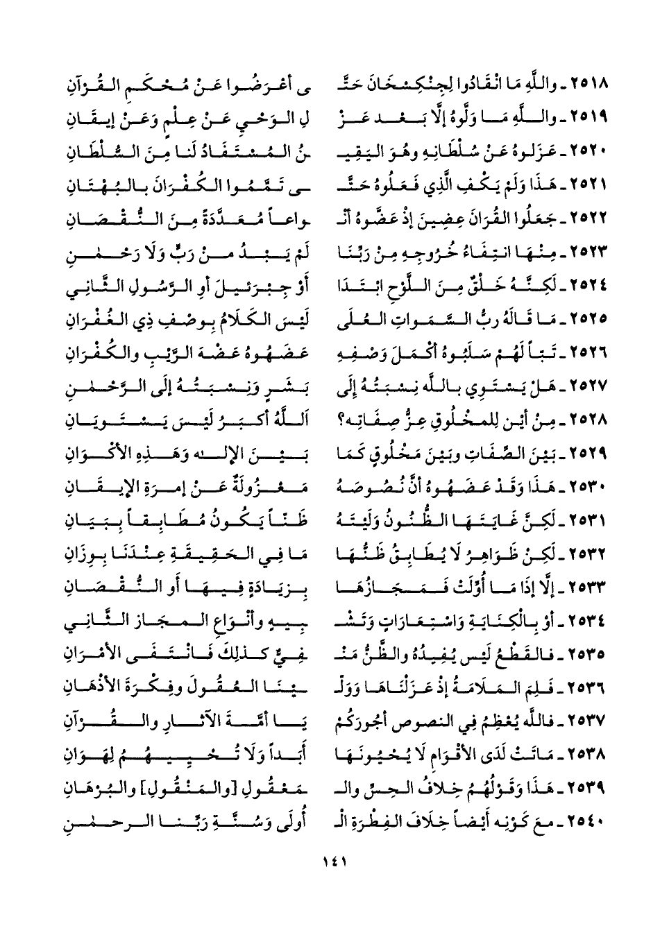 ٢٥٢٢ - جَعَلُوا القُرَآنَ عِضِينَ إذْ عَضَّوهُ أنْـ ... ـواعًا مُعَدَّدَةً مِنَ النُّقْصَانِ
