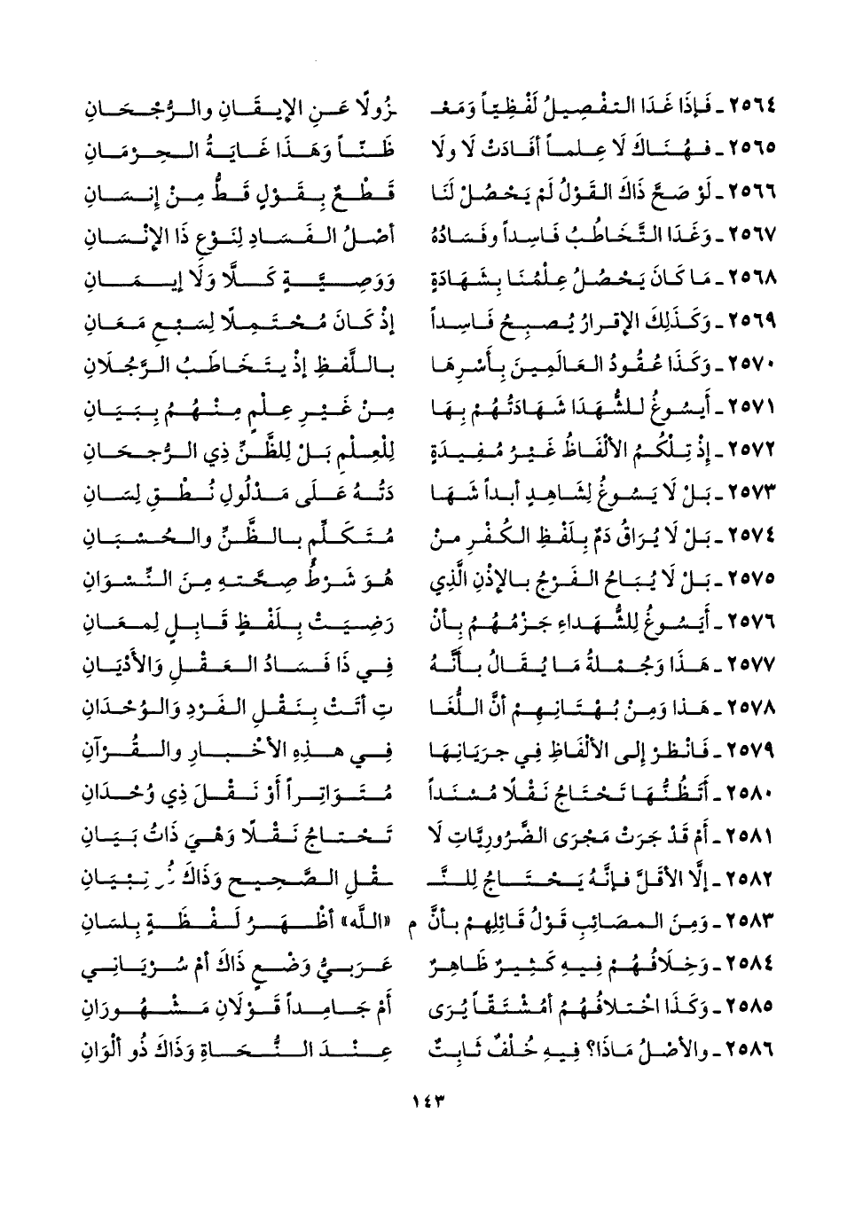 ٢٥٧٧ - هَذَا وَجُمْلةُ مَا يُقَالُ بأنَّهُ ... في ذَا فَسَادُ العَقْلِ وَالأَدْيَانِ