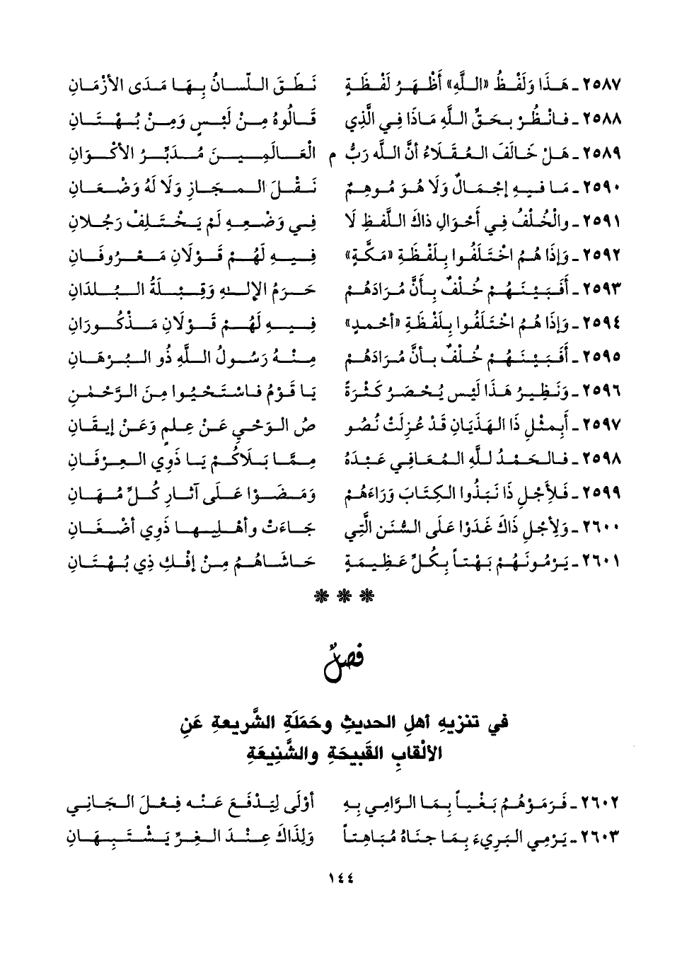 فصلٌ في تنزيهِ أهلِ الحديثِ وحَمَلَةِ الشَّريعةِ عَنِ الألْقابِ القَبيحَةِ والشَّنِيعَةِ