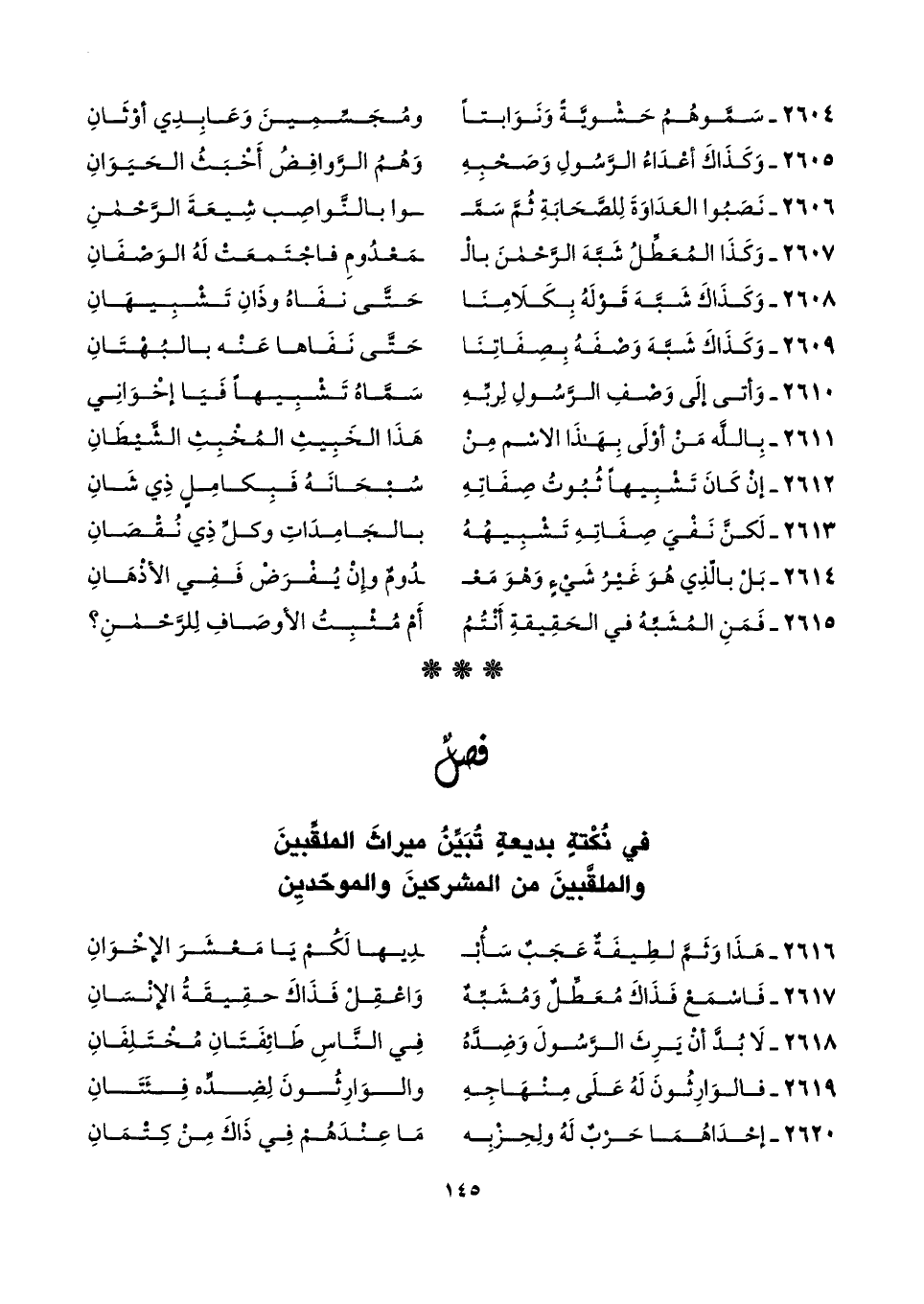 ٢٦٠٤ - سَمَّوهُمُ حَشْويَّةً وَنَوَابتًا ... ومُجَسِّمِينَ وَعَابِدِي أوْثَانِ