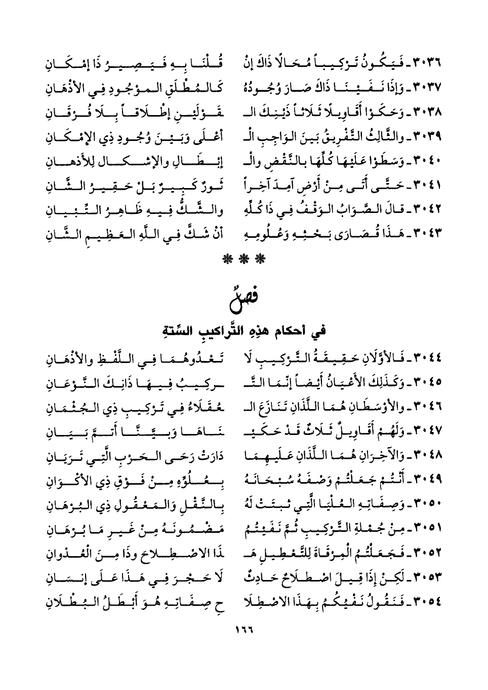 ٣٠٣٦ - فَيَكُونُ تَرْكِيبًا مُحَالًا ذَاكَ إنْ ... قُلْنَا بِهِ فَيَصِيرُ ذَا إمْكَانِ