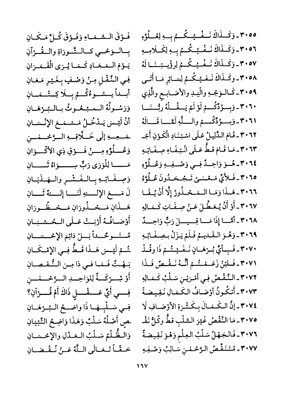 ٣٠٥٥ - وَكَذَاكَ نَفْيُكُمُ بِهِ لِعُلُوِّهِ ... فَوْقَ السَّمَاءِ وَفَوْقَ كُلِّ مَكَانِ