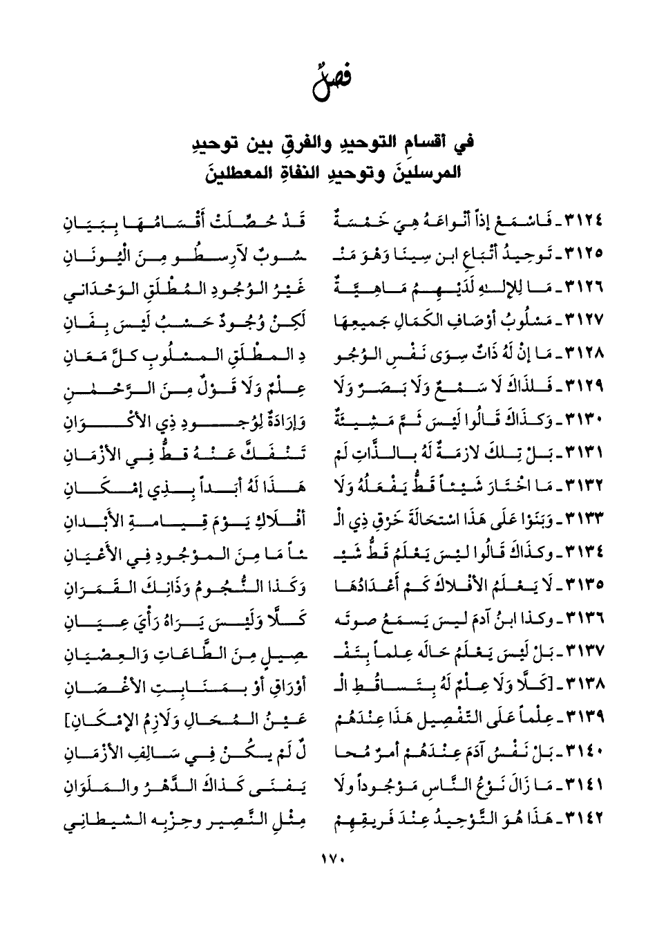 ٣١٢٥ - تَوحِيدُ أتْبَاعِ ابن سِينَا وَهْوَ مَنْـ ... ـسُوبٌ لآرِسطُو مِنَ الْيُونَانِ
