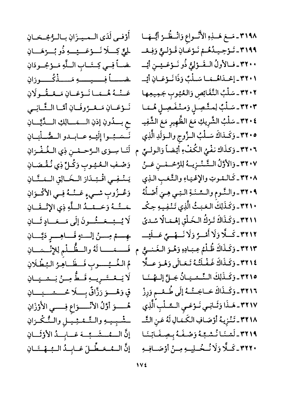 ٣١٩٨ - مَعَ هَذِهِ الأَنْواعِ وَانْظُرْ أيُّهَا ... أَوْفى لَدَى الميزَانِ بالرُّجْحَانِ