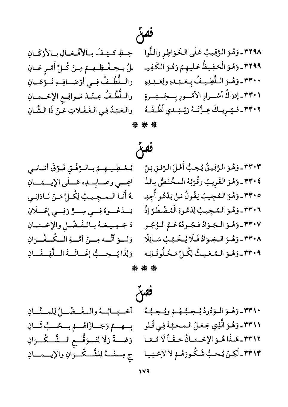 ٣٣١٠ - وَهُوَ الوَدُودُ يُحِبُّهُمْ ويُحِبُّهُ ... أحْبَابُهُ والفَضْلُ لِلمنَّانِ