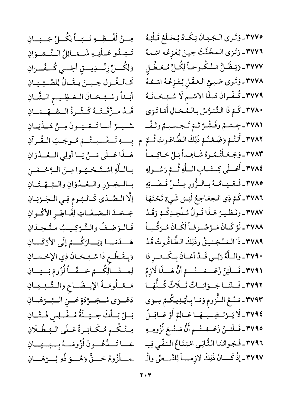 ٣٧٧٩ - كُفْرانَ هَذَا الاسْمِ لَا سُبْحَانَهُ ... أبَدًا وسُبحَانَ العَظِيمِ الشَّانِ