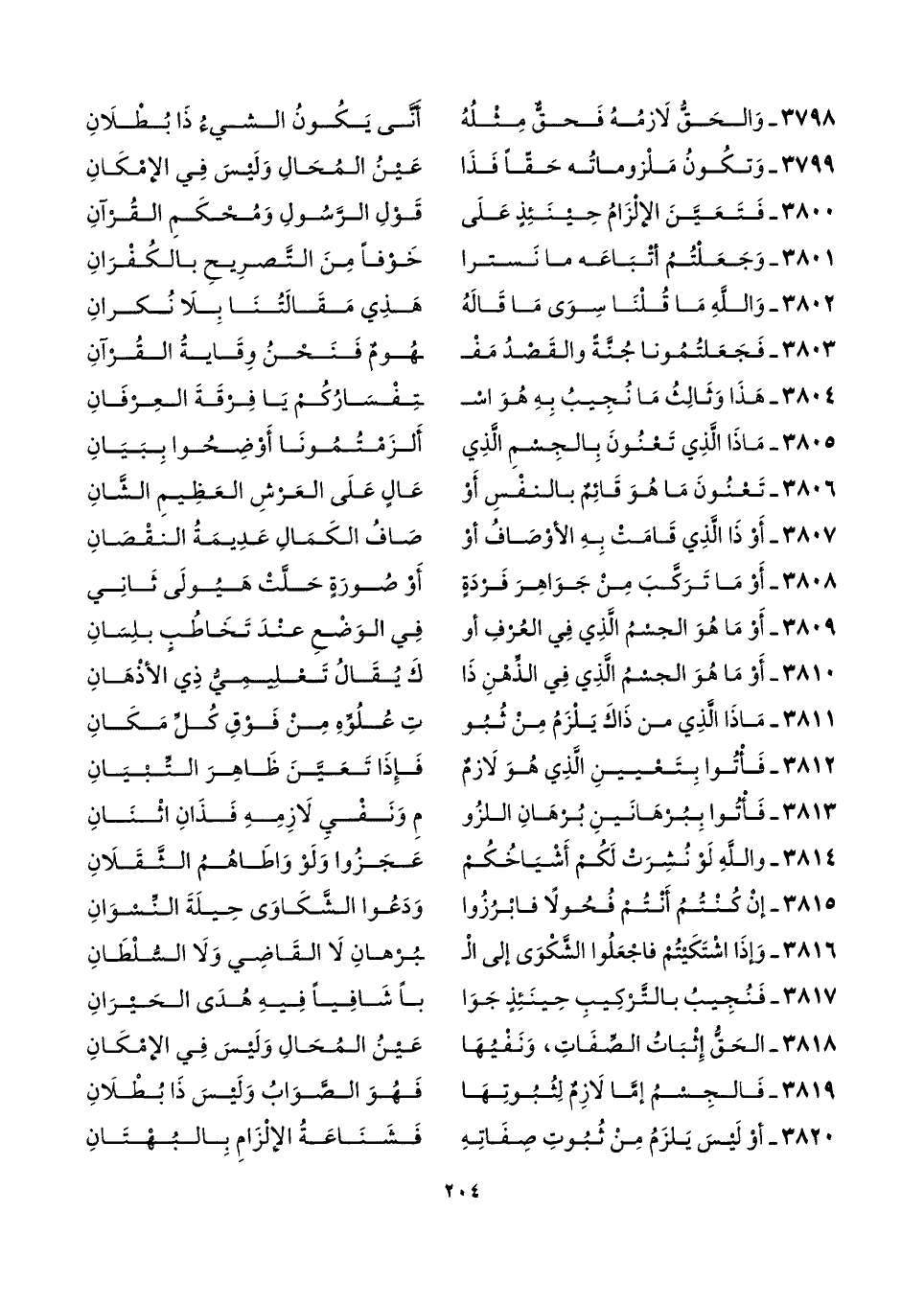 ٣٧٩٩ - وَتكُونُ مَلْزوماتُه حَقًّا فَذَا ... عَيْنُ المُحَالِ وَلَيْسَ فِي الإمْكَانِ