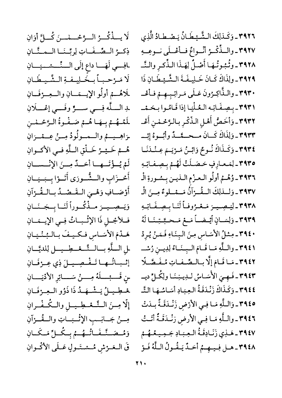٣٩٤٤ - وَكَذَاكَ زَنْدَقَةُ العِبَادِ أسَاسُهَا التَّـ ... ـعْطِيلُ يَشْهَدُ ذَا ذَوُو العِرْفَانِ