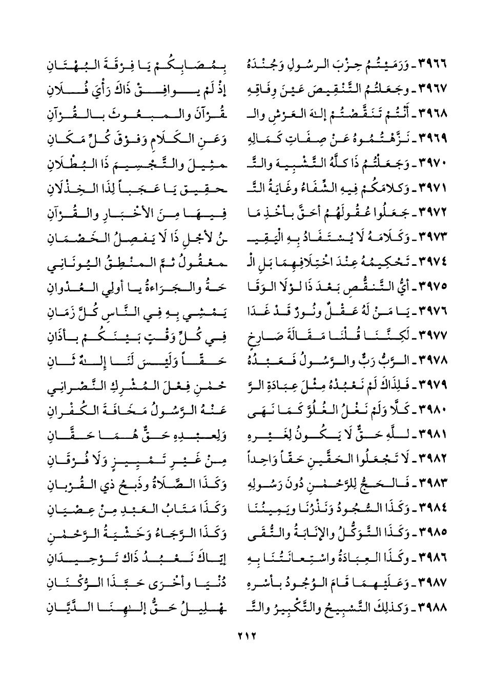 ٣٩٦٦ - وَرَمَيتُمُ حِزْبَ الرسُولِ وَجُنْدَهُ ... بِمُصَابِكُم يَا فِرْقَةَ البُهْتَانِ