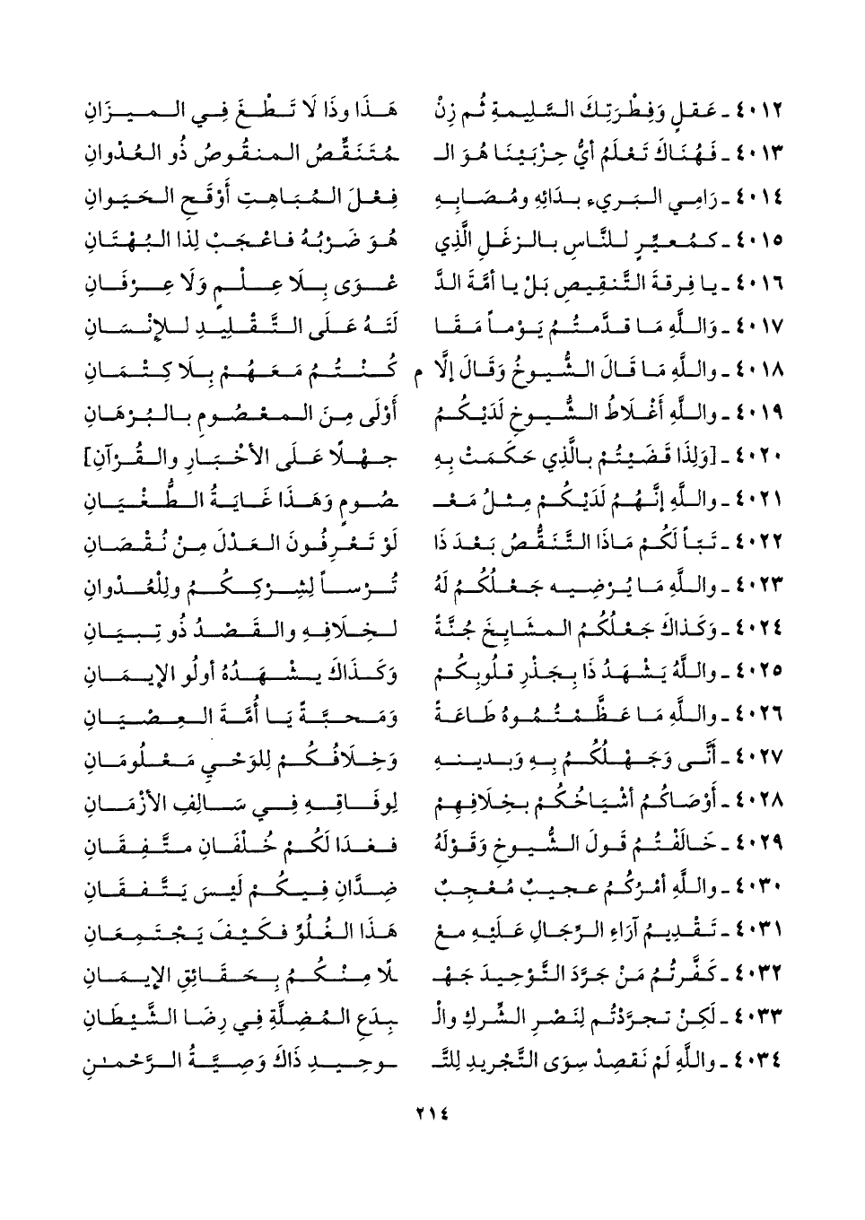 ٤٠٣٤ - واللَّهِ لَمْ نَقصِدْ سِوَى التَّجْريدِ لِلتَّـ ... وحِيدِ ذَاكَ وَصِيَّةُ الرَّحْمنِ