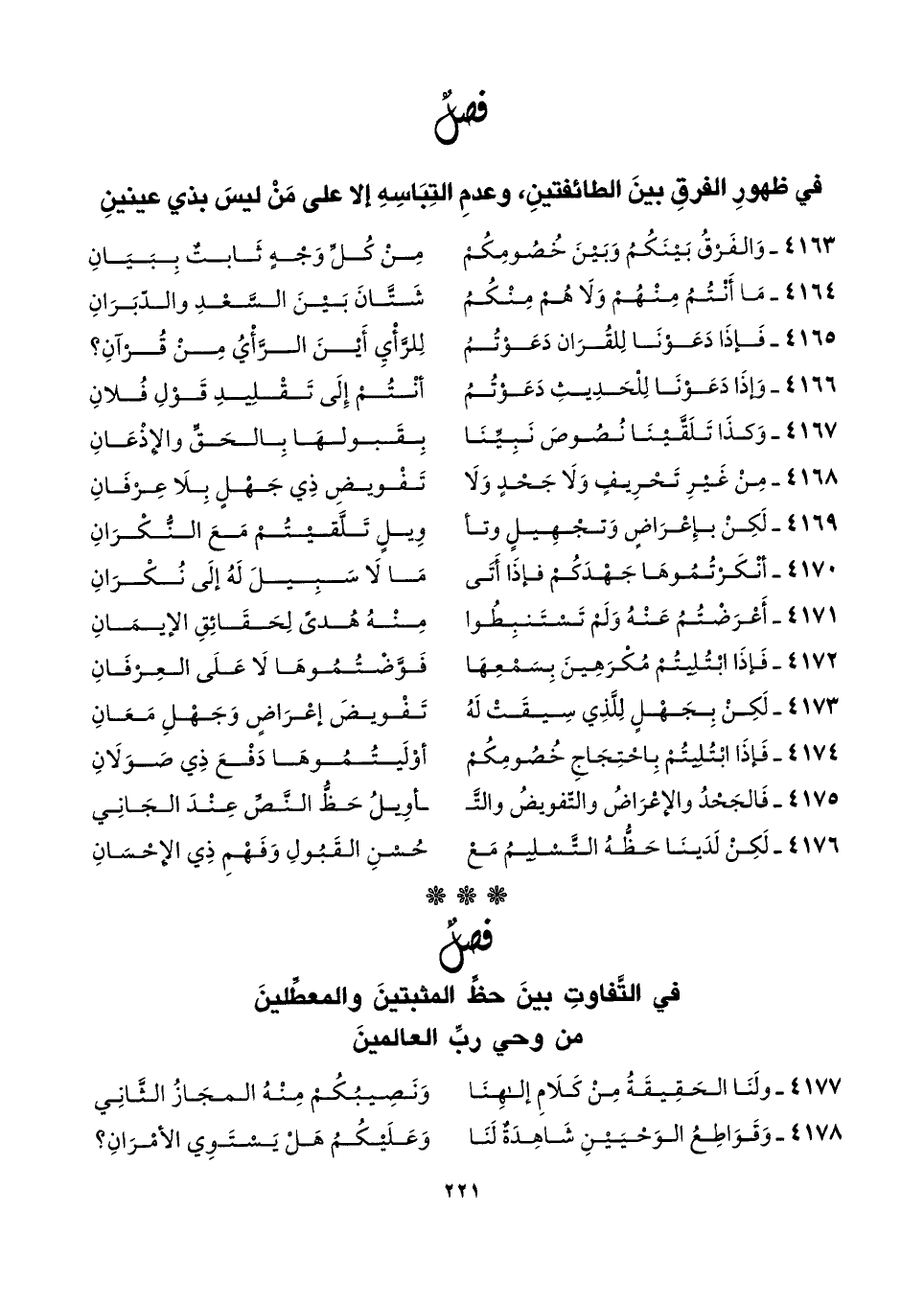 ٤١٧٧ - ولَنَا الحَقِيقَةُ مِنْ كَلَامِ إلهِنَا ... وَنَصِيبُكُمْ مِنْهُ المجَازُ الثَّانِي