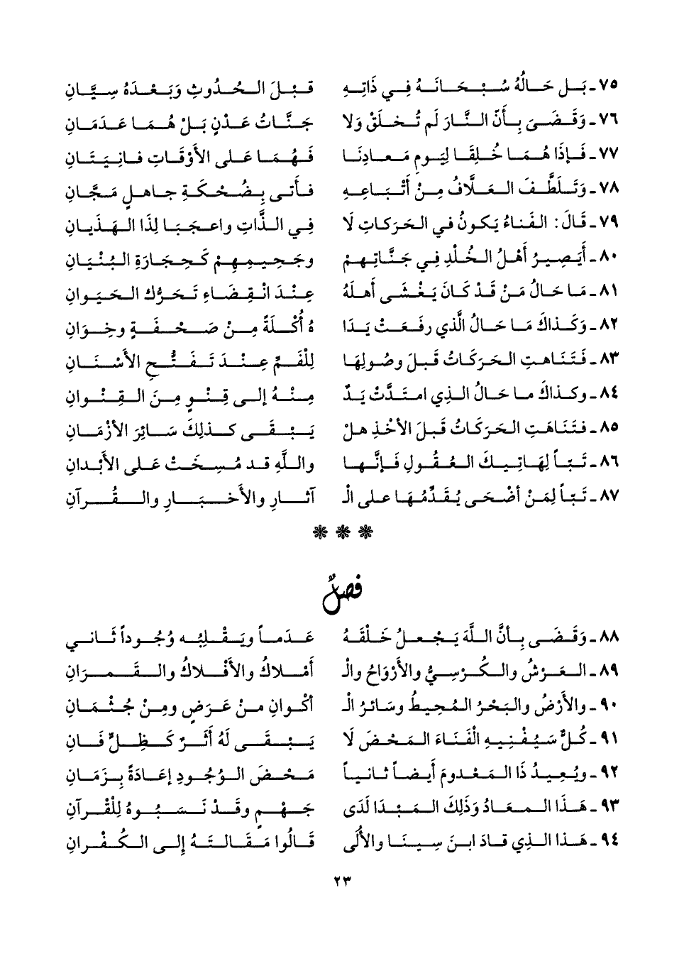 ٧٥ - بَل حَالُهُ سُبحَانَهُ فِي ذَاتِهِ ... قبْلَ الحُدُوثِ وَبَعْدَهُ سِيَّانِ