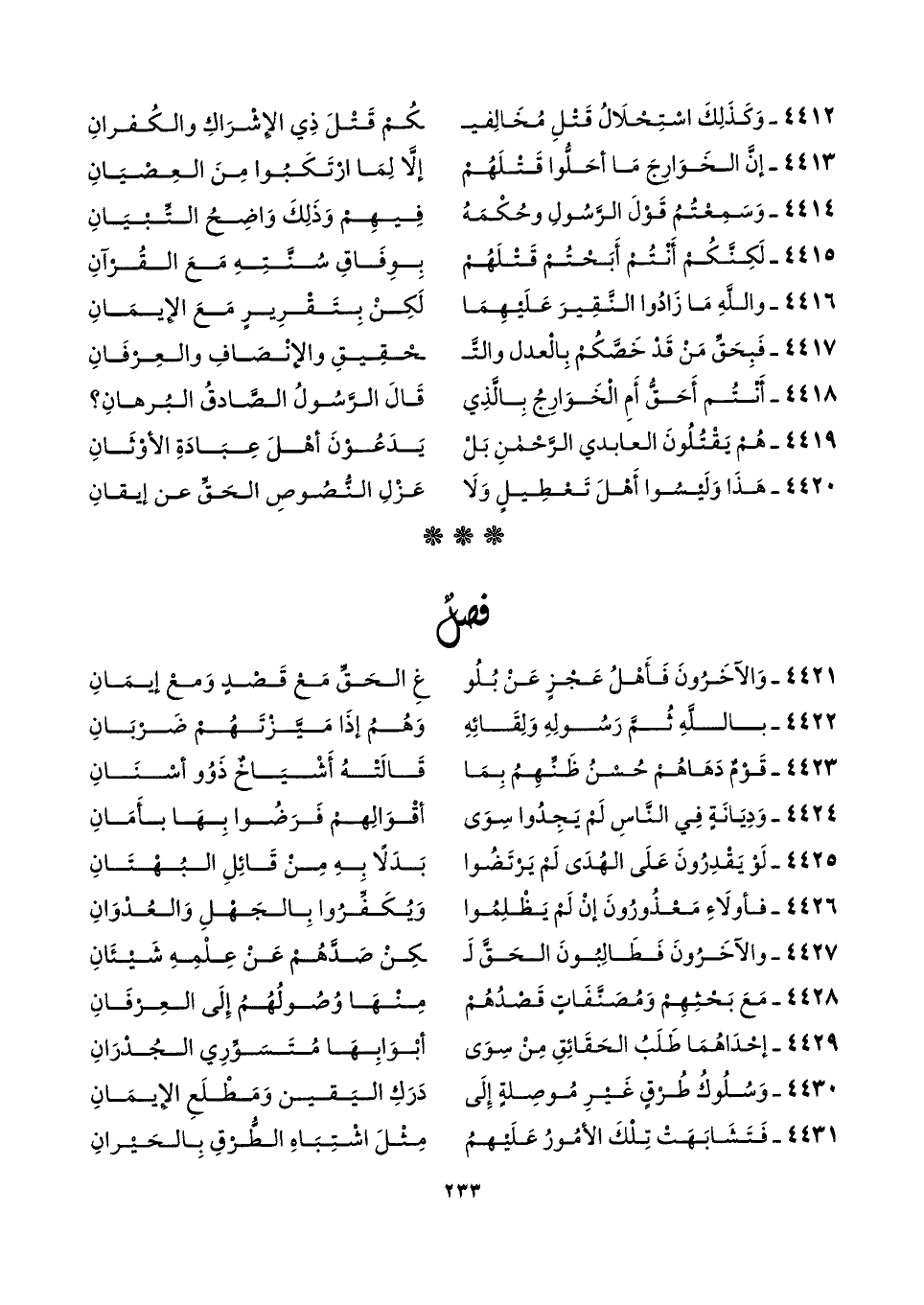 ٤٤١٣ - إنَّ الخَوَارجَ مَا أحَلُّوا قَتْلَهُمْ ... إلَّا لِمَا ارْتَكَبُوا مِنَ العِصْيَانِ