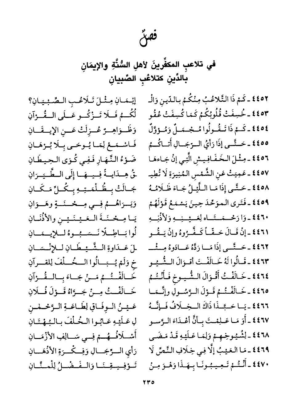 ٤٤٥٢ - كَمْ ذَا التَّلاعُبُ مِنْكُمُ بالدّينِ وَالْـ ... إيْمَانِ مِثْلَ تَلَاعُبِ الصِّبْيَانِ؟