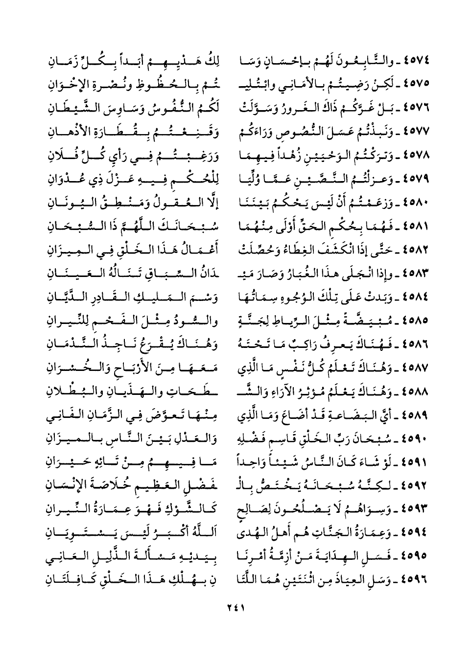 ٤٥٧٤ - والتَّابِعُونَ لَهُمْ بإحْسَانٍ وَسَا ... لِكُ هَدْيِهِمْ أبَدًا بِكُلِّ زَمَانِ