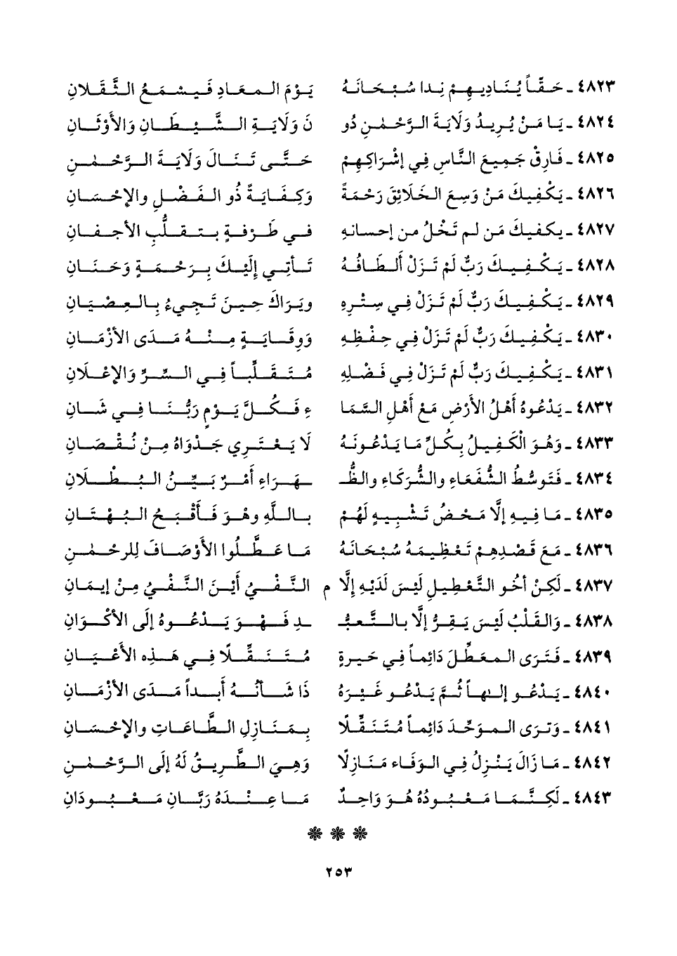٤٨٢٦ - يَكْفِيكَ مَنْ وَسِعَ الخَلَائِقَ رَحْمَةً ... وَكِفَايَةً ذُو الفَضْلِ والإحْسَانِ