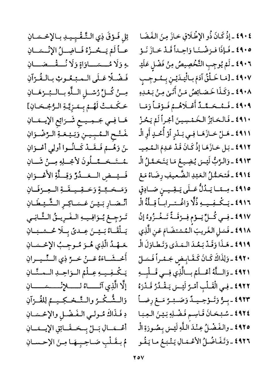٤٩٢٥ - والفَضْلُ عِنْدَ اللهِ لَيْسَ بِصُورَةِ الـ ... أعمَالِ بَلْ بِحَقَائِقِ الإيمَانِ