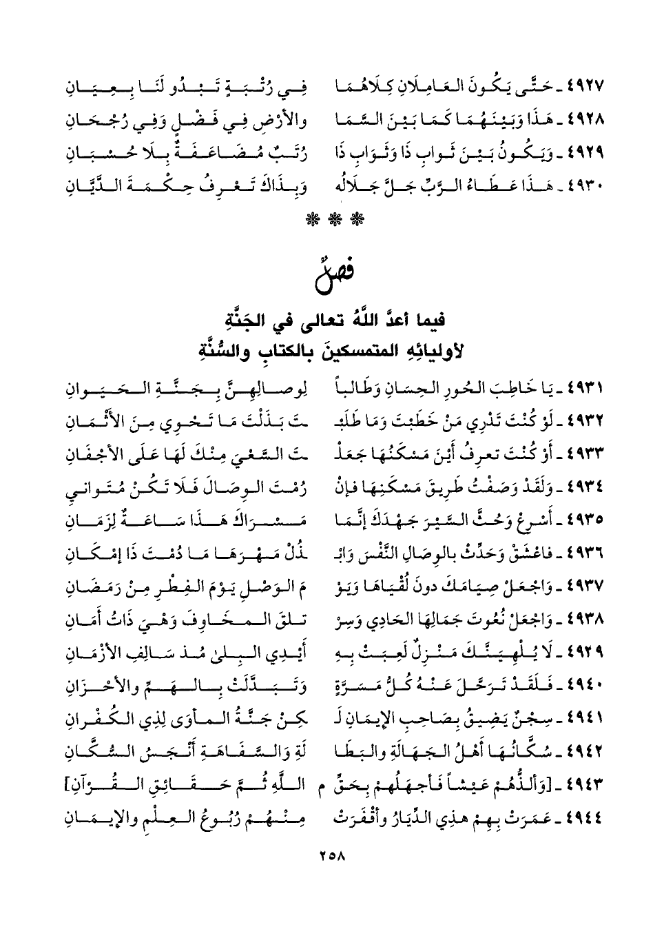 فصلٌ فيما أعدَّ اللَّهُ تعالى في الجَنَّةِ لأوليائِهِ المتمسكينَ بالكتابِ والسُّنَّةِ