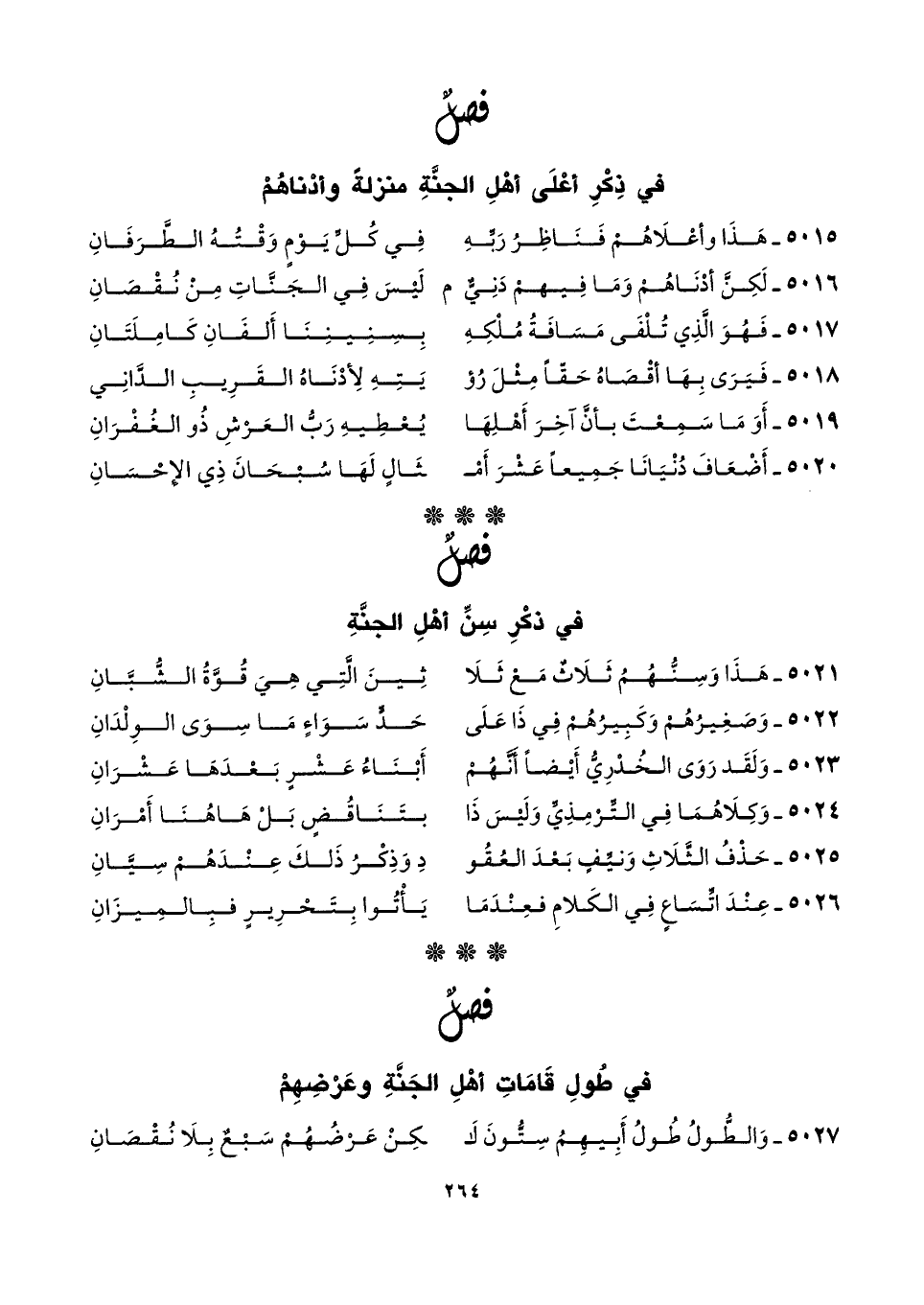 فصلٌ في طُولِ قَامَاتِ أهْلِ الجَنَّةِ وعَرْضِهِمْ