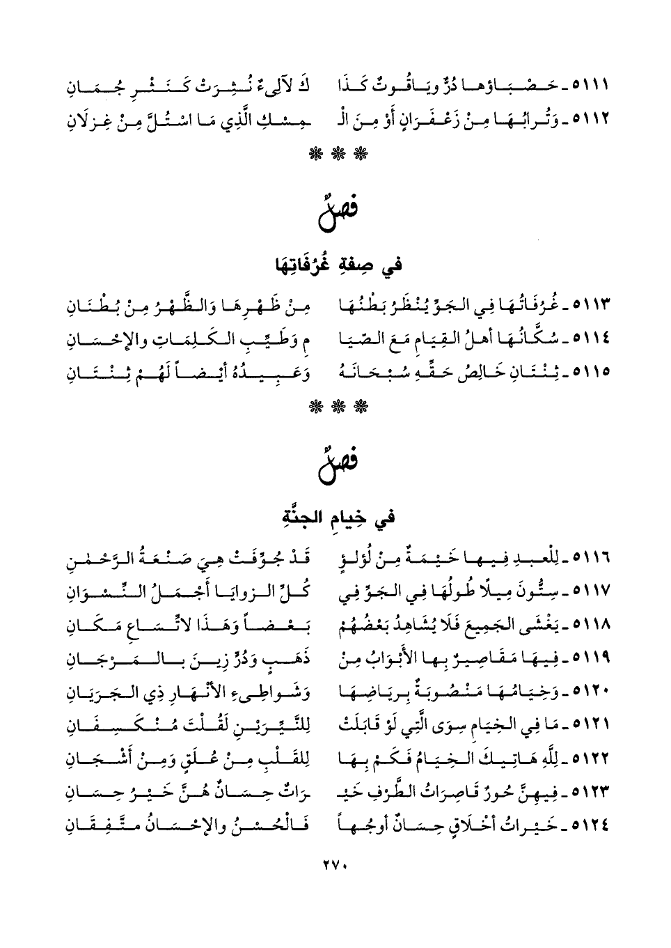 ٥١١٤ - سُكَّانُهَا أهلُ القِيَامِ مَعَ الصّيَا ... مِ وَطَيِّبِ الكَلِمَاتِ والإحْسَانِ