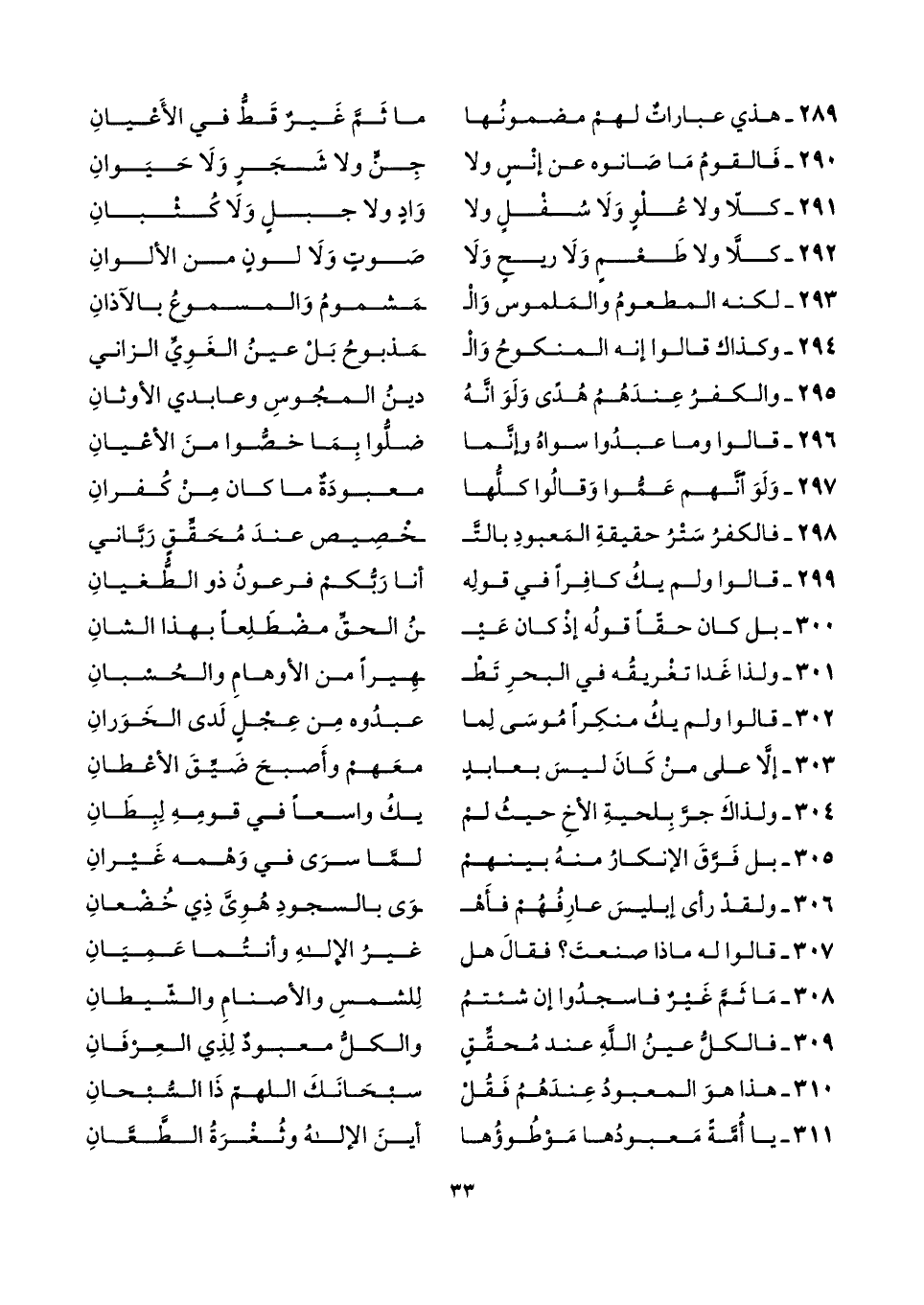 ٢٩٧ - وَلَوَ أنَّهم عَمُّوا وَقالُوا كلُّها ... معبودَةٌ ما كان مِنْ كُفرانِ