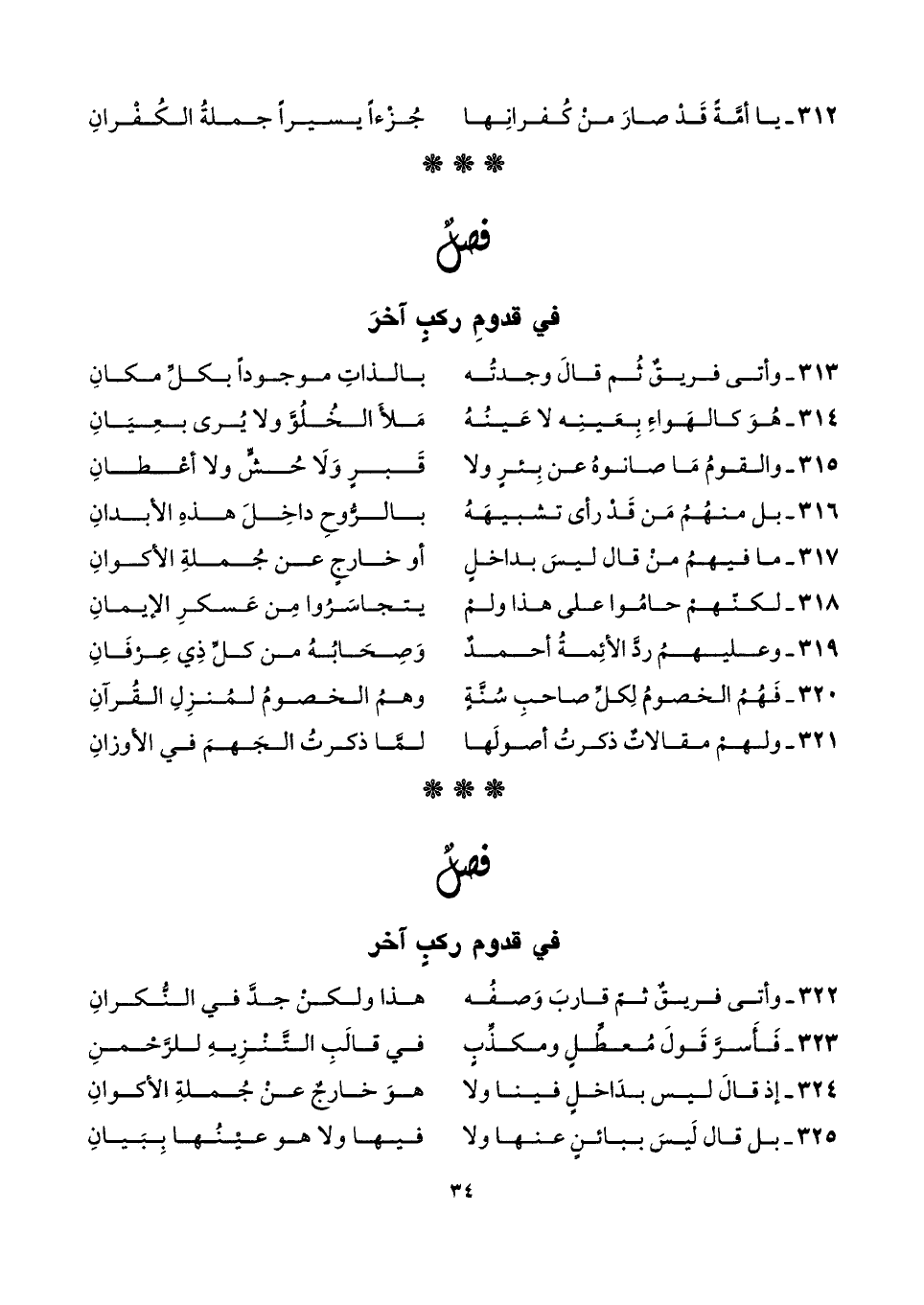 ٣١٩ - وعليهمُ ردَّ الأئِمةُ أحمدٌ ... وَصِحَابُهُ من كلِّ ذِي عِرْفَانِ