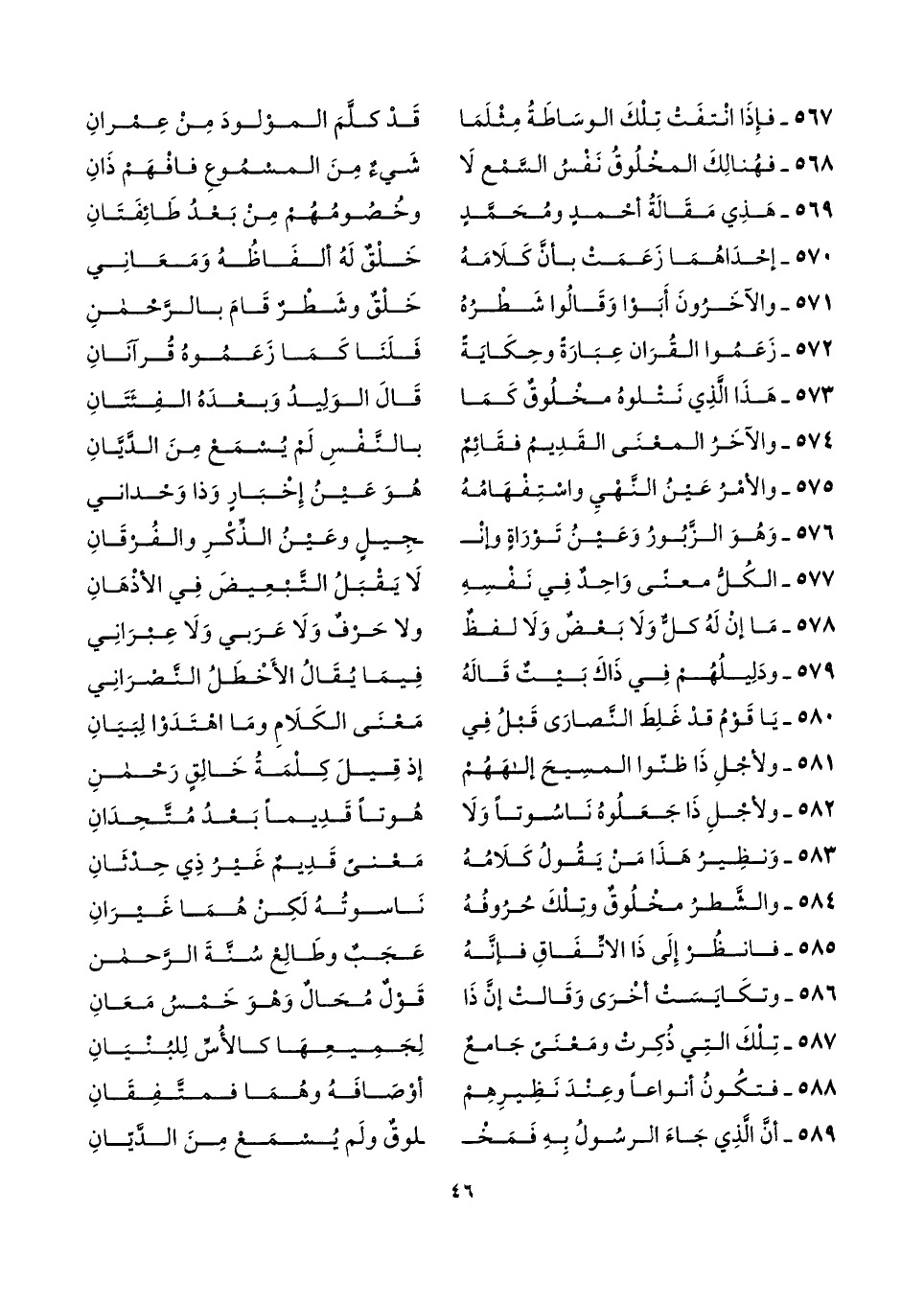 ٥٨٠ - يَا قَوْمُ قدْ غَلِطَ النَّصارَى قَبْلُ فِي ... مَعْنَى الكَلَامِ ومَا اهْتَدَوْا لِبَيَانِ