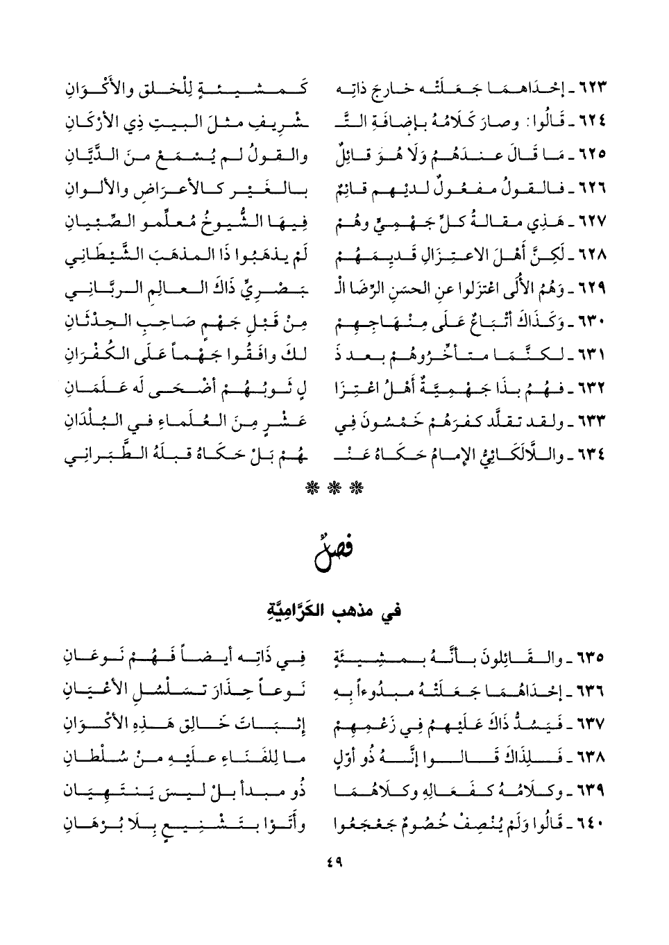 فصلٌ في مذهب الكَرَّامِيَّةِ