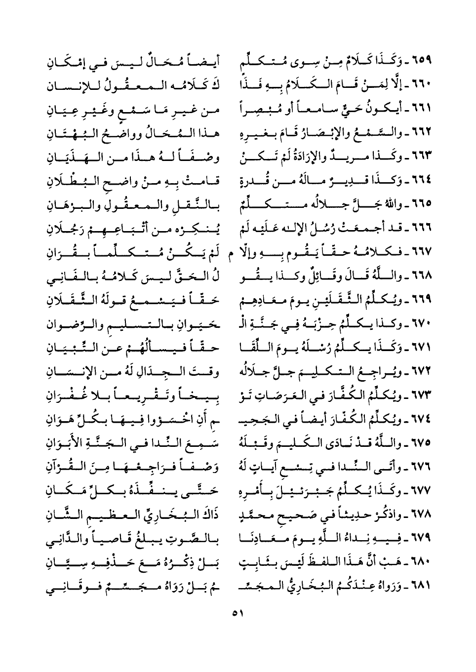٦٨١ - وَرَواهُ عِنْدَكُمُ البُخَارِيُّ المجَسَّـ ... ـمُ بَلْ رَوَاهُ مجَسِّمٌ فوقَانِي