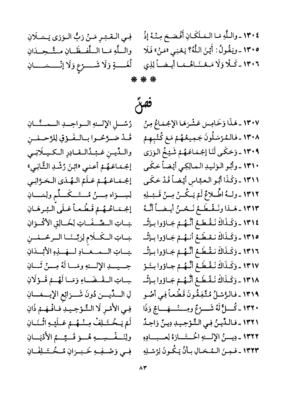 ١٣٠٨ - فالمُرْسَلُونَ جَمِيعُهُمْ مَعَ كُتْبِهِمْ ... قَدْ صَرَّحُوا بالفَوْقِ لِلرَّحمنِ