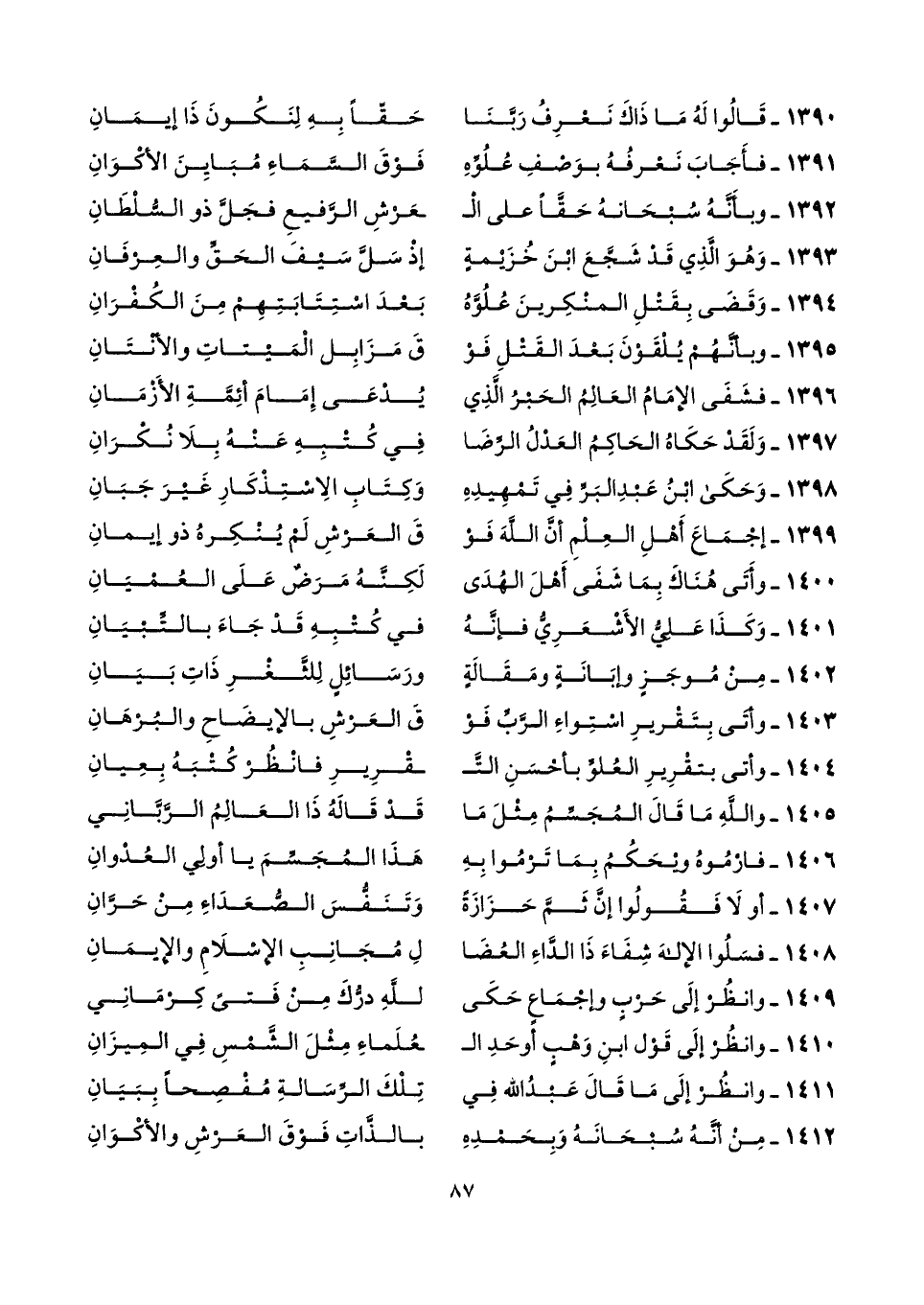 ١٣٩٢ - وبأَنَّهُ سُبحَانهُ حَقًّا على الْـ ... ـعرشِ الرَّفيعِ فجَلَّ ذو السُّلْطَانِ
