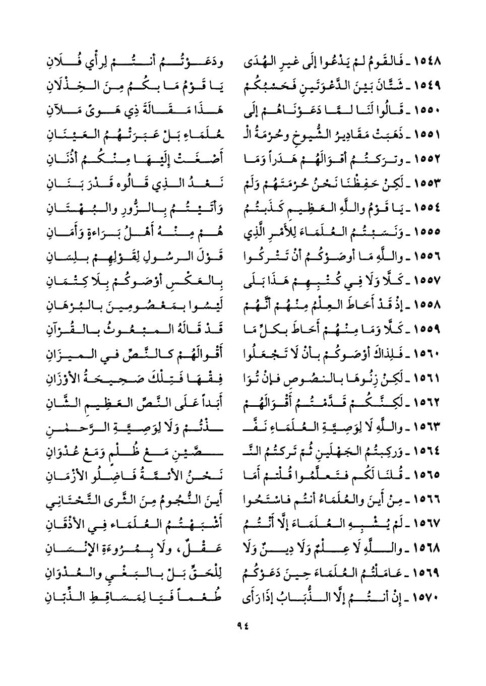 ١٥٦٠ - فَلِذاكَ أوْصَوكُم بأنْ لَا تَجْعَلُوا ... أَقْوالَهُم كالنَّصِّ في الميزَانِ