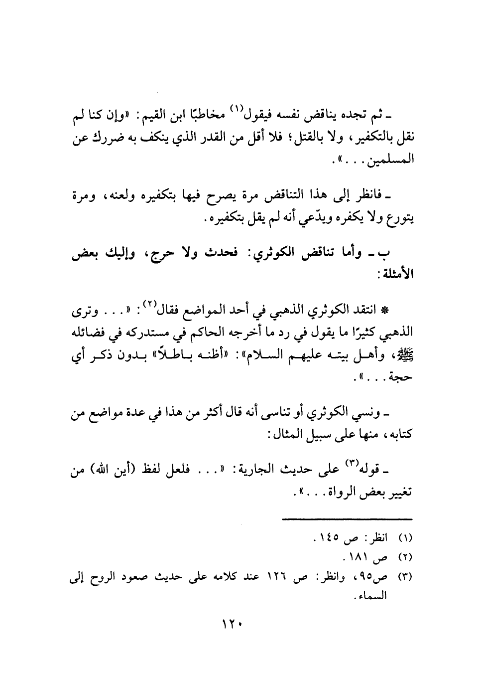 - ونسي الكوثري أو تناسى أنه قال أكثر من هذا في عدة مواضع من كتابه، منها على سبيل المثال: