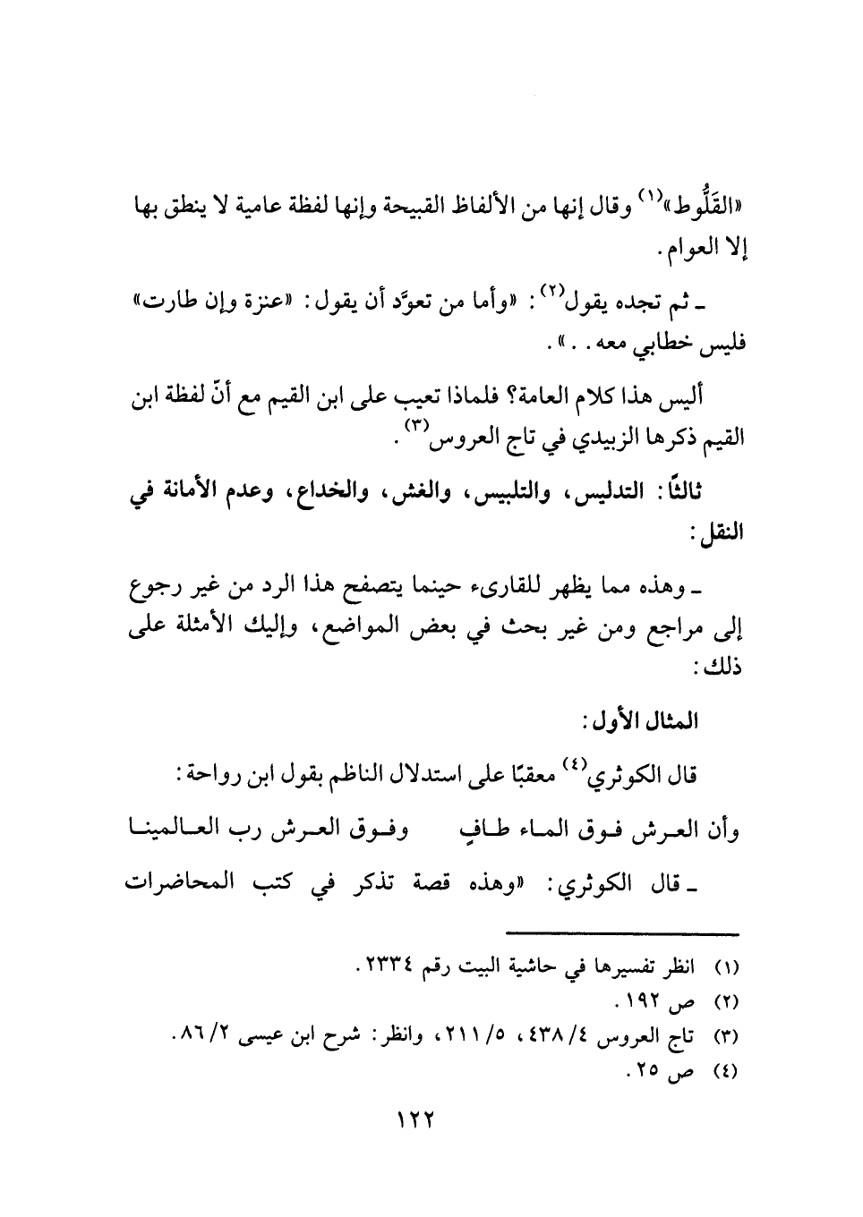 أليس هذا كلام العامة؟ فلماذا تعيب على ابن القيم مع أنّ لفظة ابن القيم ذكرها الزبيدي في تاج العروس (¬٣).
