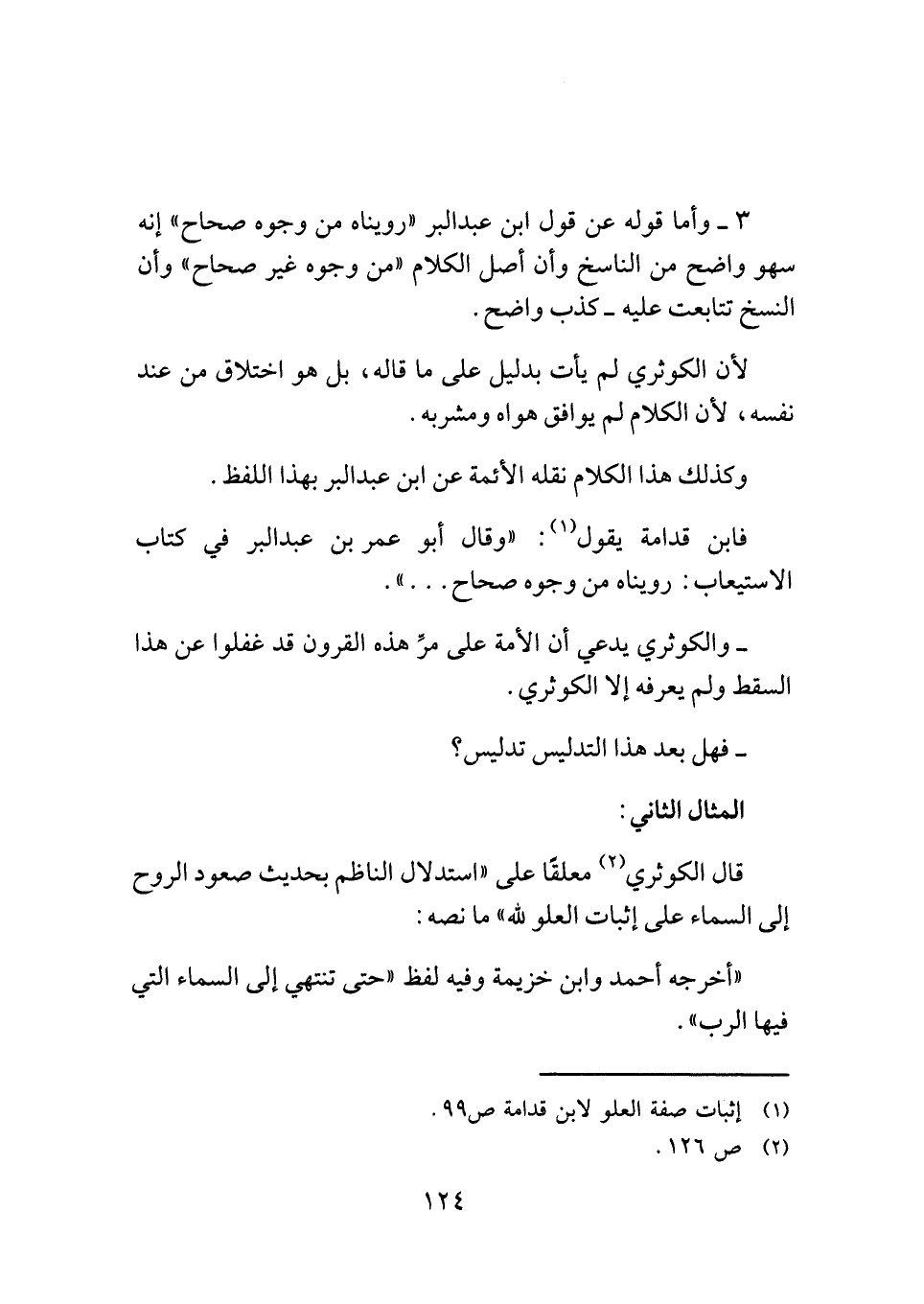 - والكوثري يدعي أن الأمة على مرِّ هذه القرون قد غفلوا عن هذا السقط ولم يعرفه إلا الكوثري.