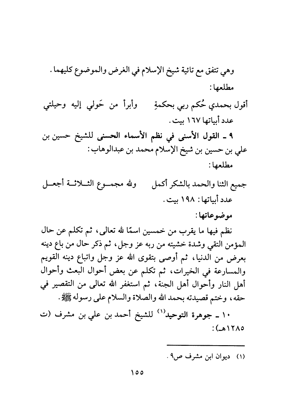 ٩ - القول الأسنى في نظم الأسماء الحسنى للشيخ حسين بن علي بن حسين بن شيخ الإسلام محمد بن عبد الوهاب: