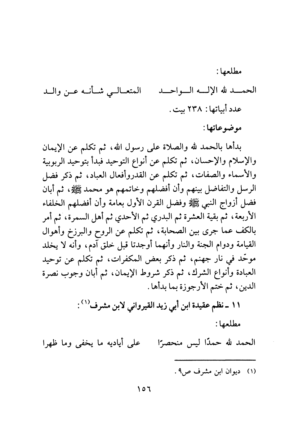 ١١ - نظم عقيدة ابن أبي زيد القيرواني لابن مشرف (¬١):