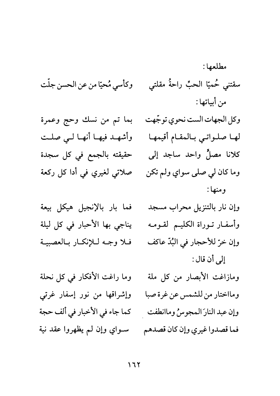 كلانا مصلٍّ واحد ساجد إلى ... حقيقته بالجمع في كل سجدة