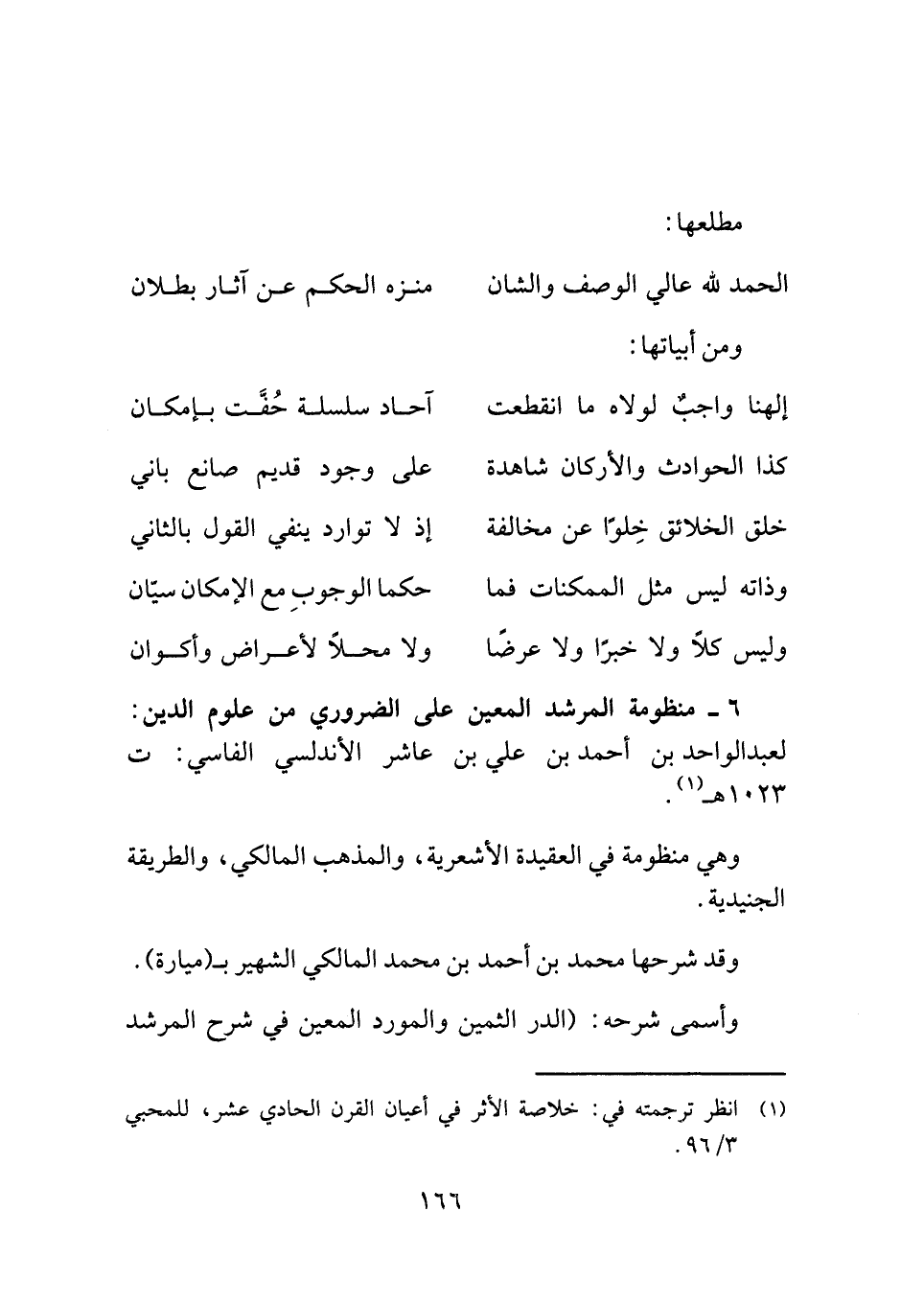 ٦ - منظومة المرشد المعين على الضروري من علوم الدين: لعبد الواحد بن أحمد بن علي بن عاشر الأندلسي الفاسي: ت ١٠٢٣ هـ (¬١).